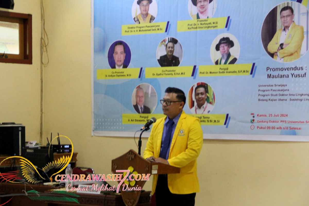 Setelah sukses menyelesaikan ujian terbuka sidang promosi doktoral di kampus Pascasarjana Universitas Sriwijaya, Kamis, 25 Juli 2024, 09.00 WIB s.d selesai, bertepatan di Gedung Doktor Program Pascasarjana Universitas Sriwijaya Jalan Padang Selasa 524 Bukit Besar Palembang.