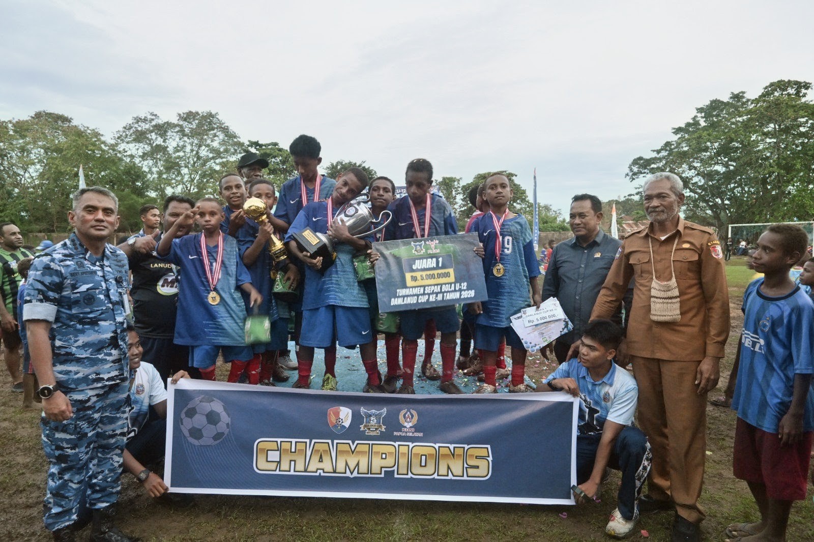 Merauke||Cendrawasi7, Turnamen sepak bola usia dini Danlanud Cup U-12 ke-3 tahun 2026 resmi ditutup dengan penuh kemeriahan di Lapangan Legimin Lanud J.A. Dimara, Senin (20/4/2026) sore. Kompetisi yang digelar dalam rangka HUT ke-80 TNI Angkatan Udara ini tak sekadar menjadi ajang perebutan gelar, tetapi juga etalase lahirnya talenta-talenta muda Papua Selatan.