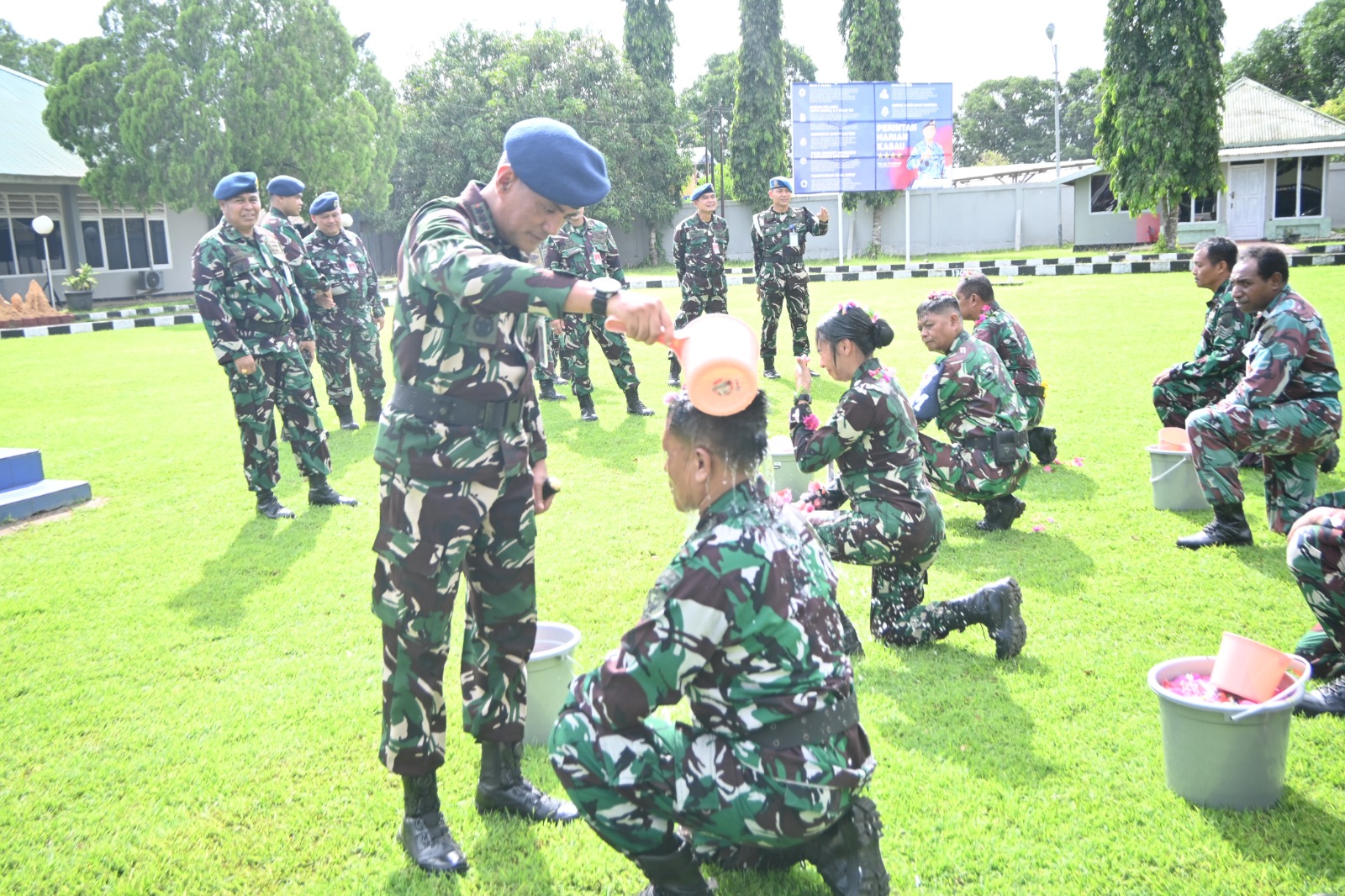 ‎Rangkaian kegiatan ditutup dengan tradisi penyiraman air bunga, pemberian ucapan selamat dari Komandan beserta seluruh personel, serta ramah tamah sebagai wujud kebersamaan dan rasa syukur. (*)