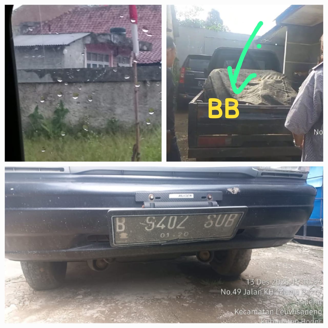 Tim investigasi kemudian menelusuri jalur distribusi bahan kimia tersebut. Di wilayah Desa Sadeng, Kecamatan Leuwisadeng, tim menemukan mobil pick up Suzuki Carry yang memuat karung karbon dan sianida, yang diduga digunakan sebagai sarana distribusi bahan kimia menuju lokasi tambang emas ilegal.