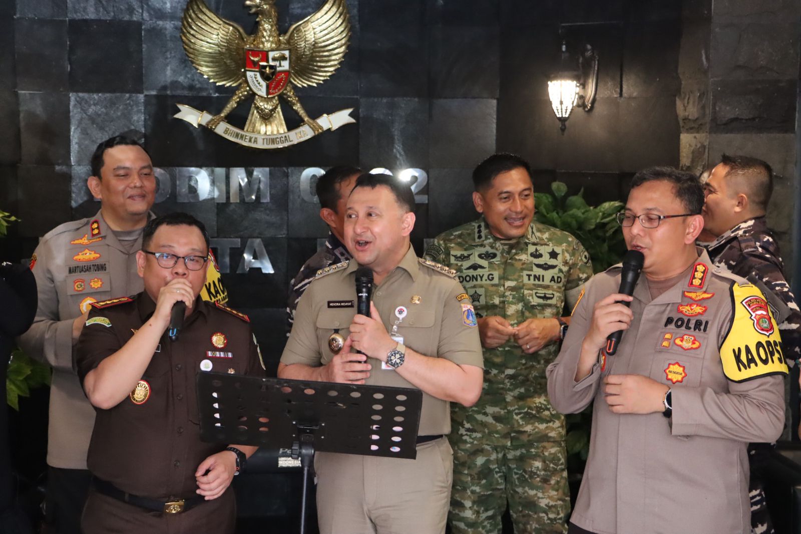 Kajari Jakarta Utara Dr. Yunto Safarillo H.T., Danpuspomal Letkol Arnaz, Danyon Arhanud 6/Bay Letkol M. Arifin.
