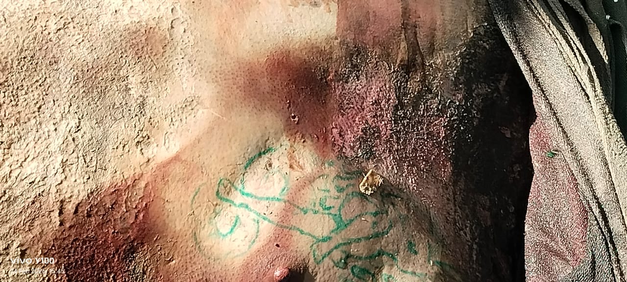 Satu-satunya ciri yang masih dapat dikenali adalah tato bergambar perempuan pada bagian dada korban.