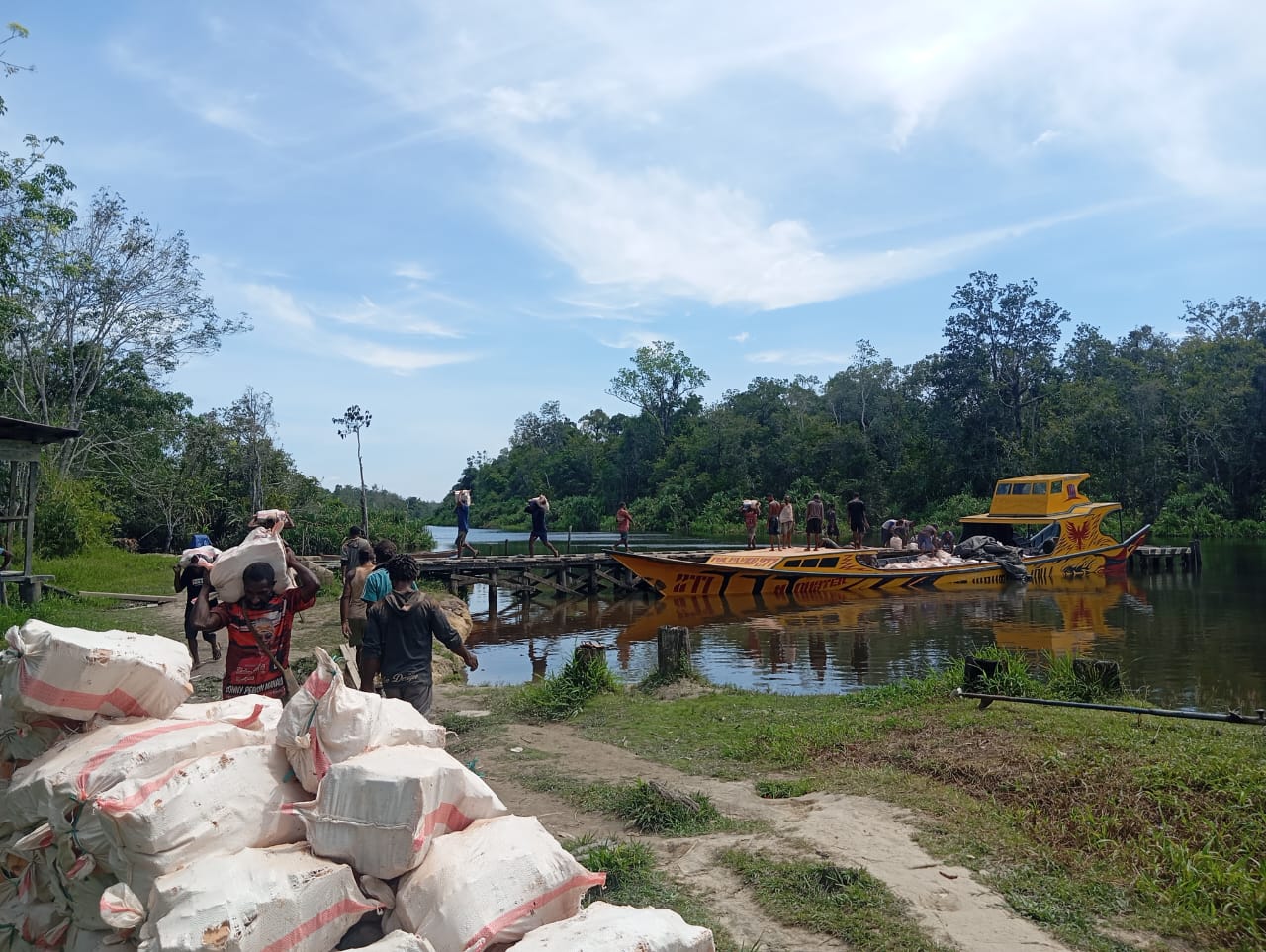 Tak hanya fokus pada pembangunan fisik, keterlibatan warga menjadi pemandangan utama di lapangan. Masyarakat Kampung Yibin bergotong royong membantu menurunkan material bangunan dari kapal kayu ke dermaga. Kolaborasi ini memperlihatkan semangat kebersamaan yang menjadi ruh program TMMD.