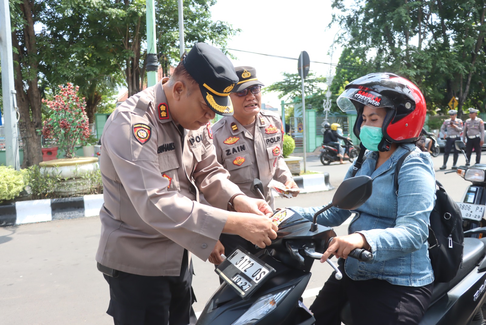 Selain pemasangan stiker, kegiatan ini juga, diisi dengan himbauan Keamanan, Keselamatan, Ketertiban, dan Kelancaran Lalu Lintas (Kamseltibcarkantas).