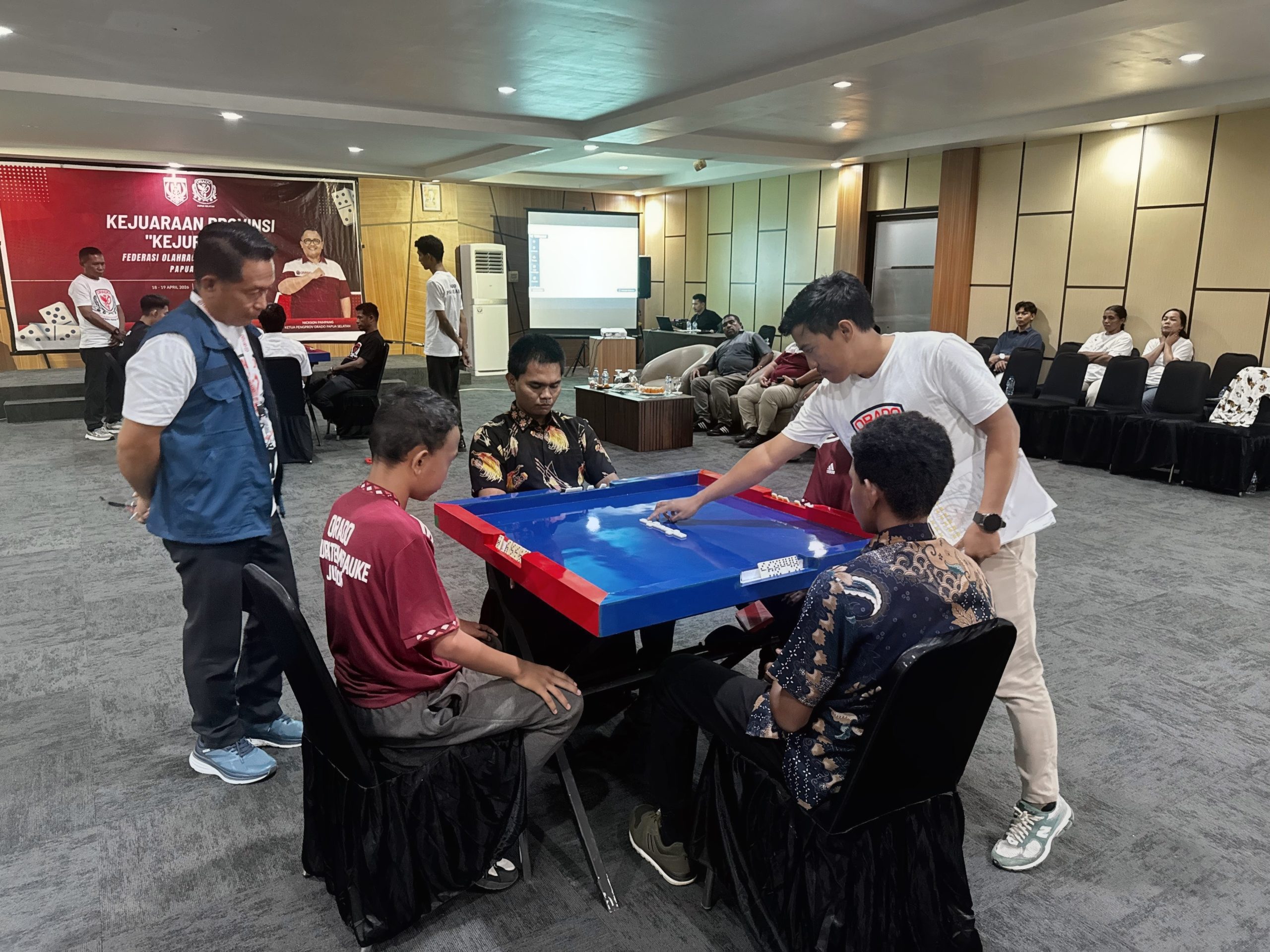 Merauke||Cendrawasi7, Pengurus Provinsi Olahraga Domino (Orado) Papua Selatan resmi menggelar Kejuaraan Provinsi (Kejurprov) perdana di Hotel Care Inn, Merauke, pada 18–19 April 2026. Ajang ini menjadi langkah awal serius dalam membangun ekosistem olahraga domino sebagai cabang prestasi di wilayah tersebut.
