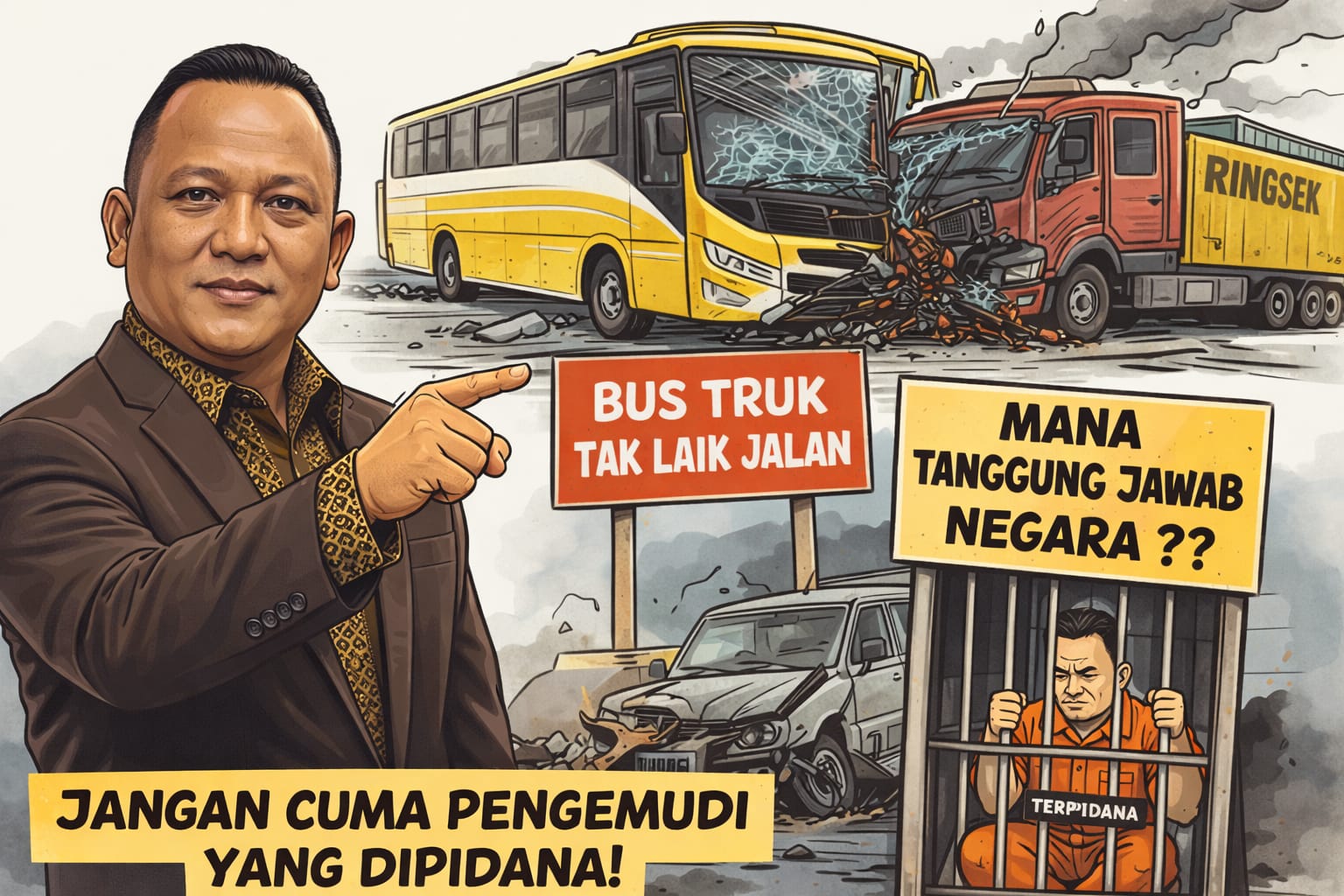 Cendrawasi 7.Com.  Dalam praktik lalu lintas dan angkutan jalan, kita sering melihat hukum diterapkan secara formal, tetapi hasilnya justru jauh dari rasa keadilan dan keselamatan publik. Pengemudi dipenjara, korban tetap menanggung beban, sementara sistem yang melahirkan kecelakaan nyaris tak tersentuh.(2/1/2026)