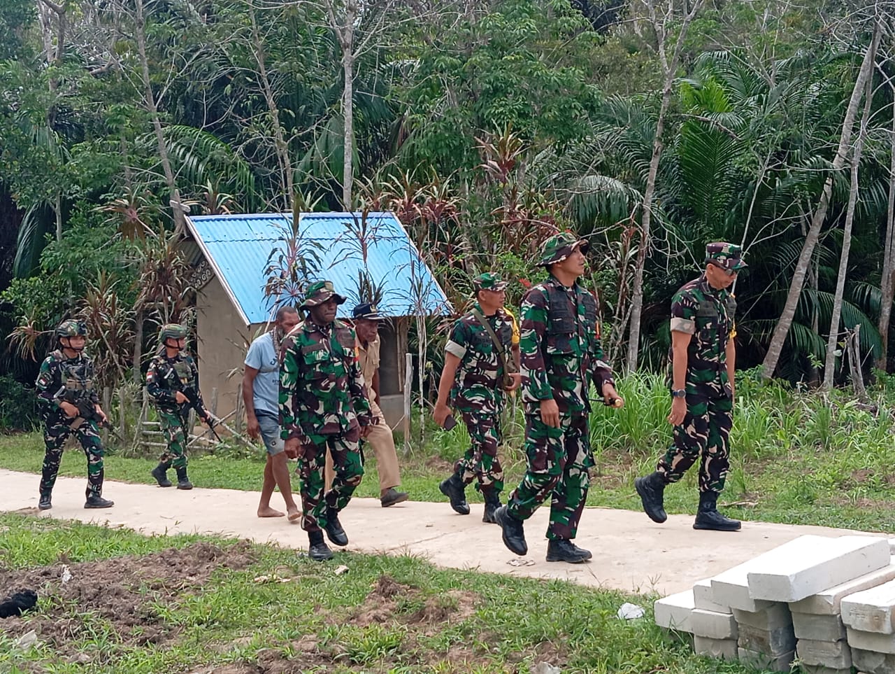 ‎Ketua Tim Wasev Mabesad, Kolonel Inf Muhammad Ibnu Subroto, didampingi Dandim 1704/Mappi Letkol Inf Bayu Adhi Nugroho selaku Dansatgas TMMD ke-127, mengecek satu per satu progres pembangunan fisik yang dikerjakan prajurit bersama warga.