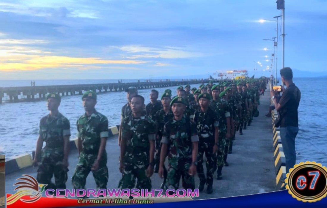 WAROPEN||Cendrawasi7.com, Komandan Kodim 1709/Yawa, Letkol Inf Baskoro Wijaya Atmanto, S.E, menghadiri langsung kegiatan penjemputan Batalyon Teritorial Pembangunan (Yon TP) 860/NSK yang tiba di Pelabuhan Pidemani, Kabupaten Waropen, menggunakan KM Masirei, Selasa (06/01/2026).