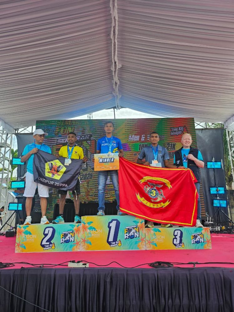 📍 Sorong, Papua Barat Daya, Semangat juang dan daya saing tinggi kembali ditunjukkan oleh prajurit Korps Marinir Pasmar 3. Dalam ajang Fun Run Aston 5K Tahun 2025, atlet lari andalan Pasmar 3, Serda Marinir Ryan Setiawan, berhasil meraih medali emas dengan catatan waktu 17 menit 40 detik, sekaligus mengharumkan nama Korps Marinir dan TNI Angkatan Laut di tingkat daerah.