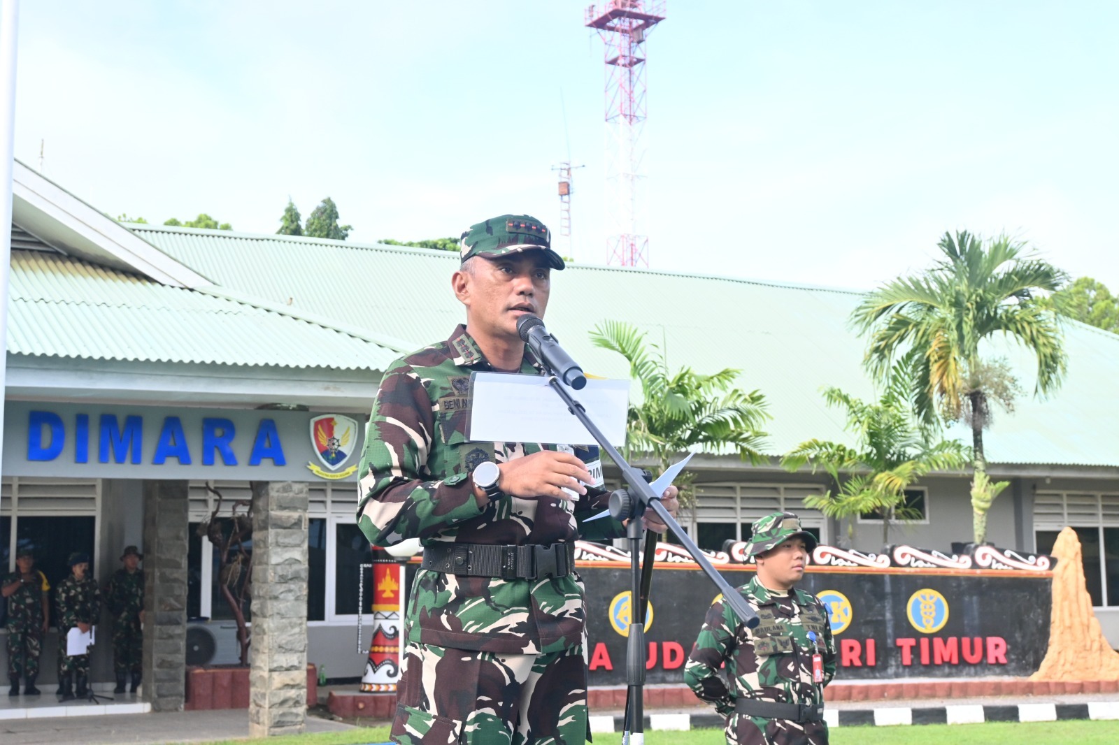 Sejumlah pejabat Lanud J.A. Dimara turut hadir, di antaranya Kadisops Letkol Pas Nugroho Wimbo P, S.Pd., Kadislog Letkol Kal Helmi Nurman, UKSE, Dansatpom Mayor Pol Galih Chandra Artileri, serta Ka. GPL Mayor Kal Maulana Salehudin, S.E.