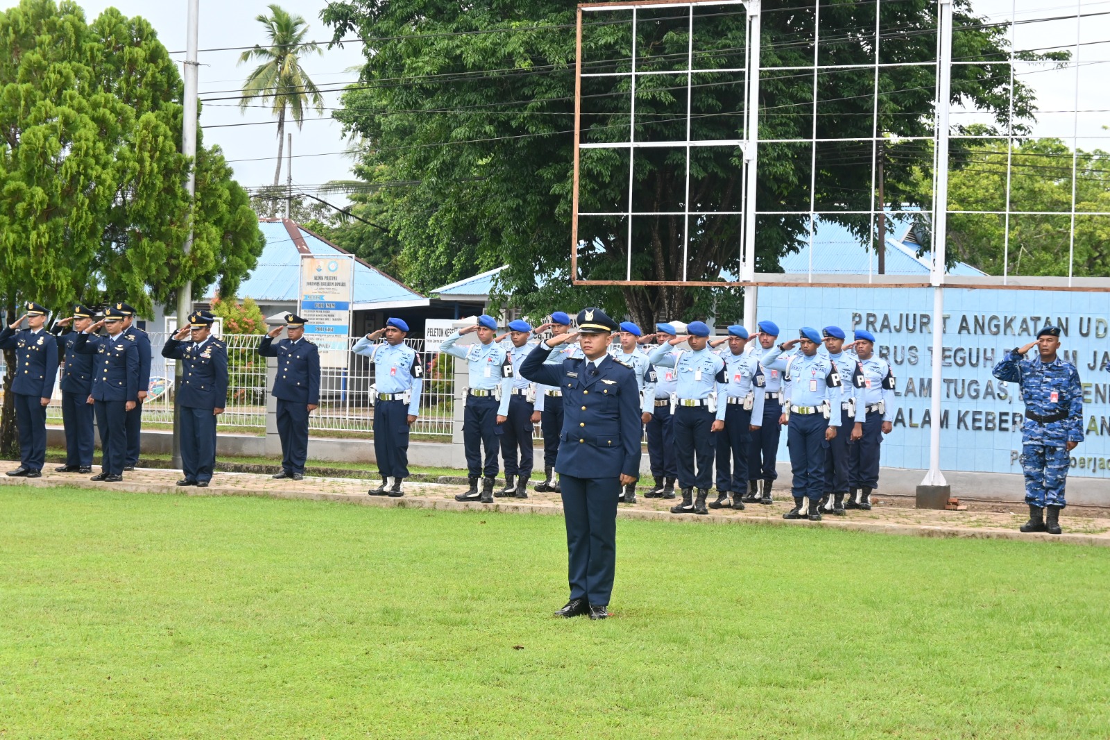 Upacara peringatan Hari Bela Negara ke-77 di Lanud J.A. Dimara berlangsung khidmat dan tertib, serta diikuti oleh seluruh personel Lanud J.A. Dimara. (*)