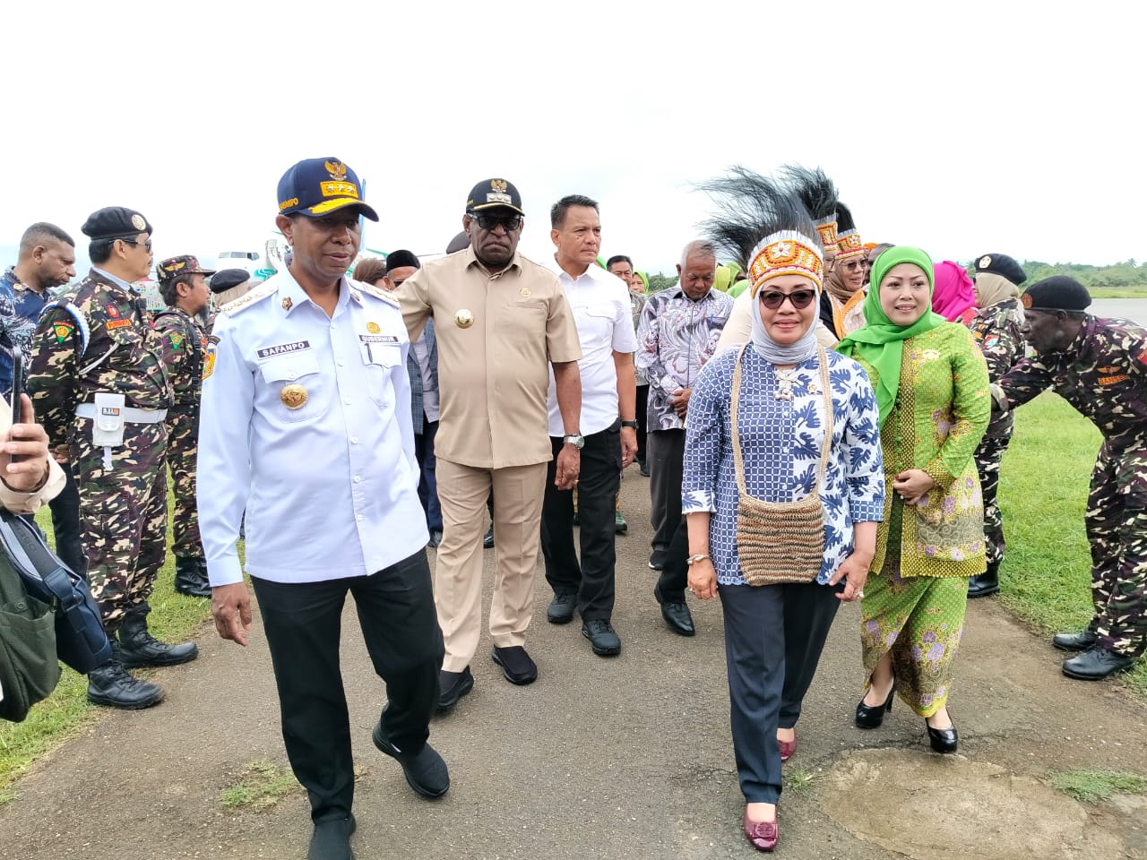 Arifah tidak datang sendiri. Ia didamping sejumlah rombongan. Prosesi penyambutan berlangsung meriah dengan tari-tarian khas Papua yang digelar di pintu masuk ruang VIP bandara.