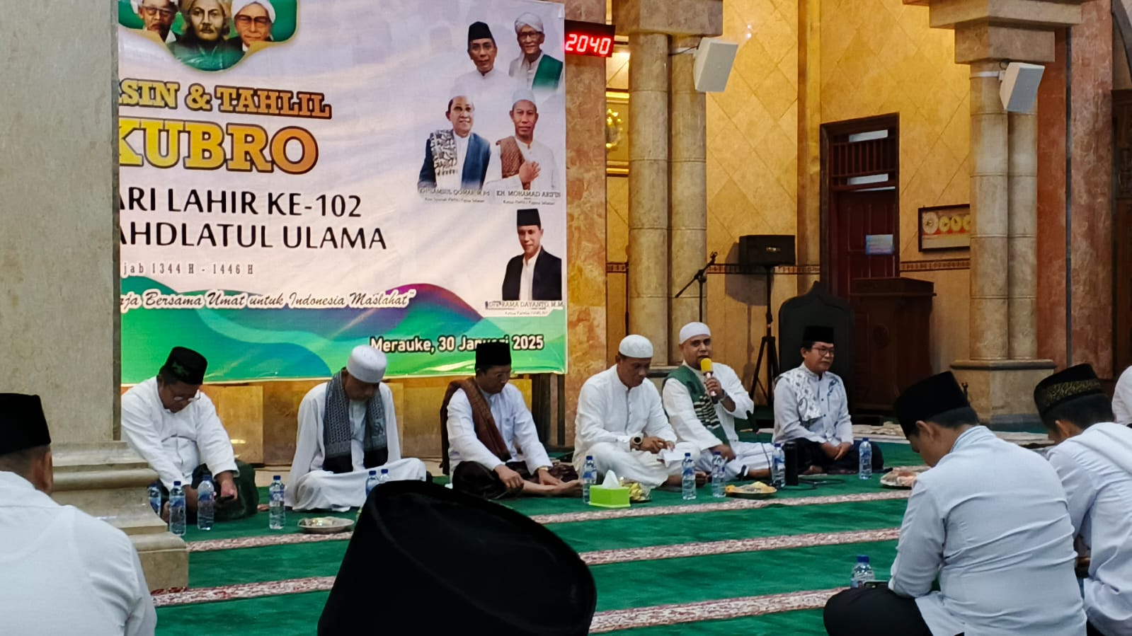 Ratusan umat Islam di Kabupaten Merauke, Papua Selatan, menggelar pembacaan Surat Yasin dan Tahlil Kubro dalam rangka memperingati Hari Lahir (Harlah) ke-102 Nahdlatul Ulama (NU) tahun 2025. Kegiatan ini berlangsung pada Kamis malam (30/01/2025) di Masjid Raya Al Aqsha, Provinsi Papua Selatan, dan dipimpin langsung oleh Ustadz Yasin.