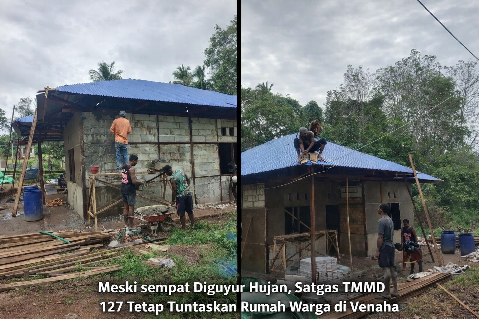 Sejumlah pekerjaan fisik menjadi fokus utama pada H+18. Di antaranya penyelesaian tiga unit rumah warga. Rumah milik Fransiskus Saferius Abohoy kini memasuki tahap pemasangan seng dan plester dinding bagian dalam.
