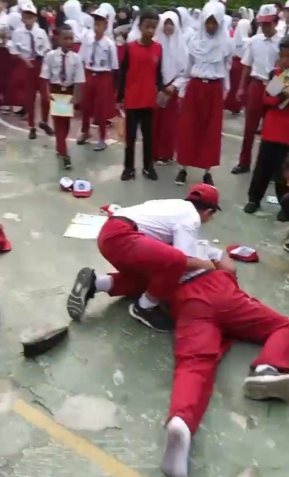 Warga setempat yang mengetahui kejadian tersebut juga turut membantu mengamankan area dan membantu memindahkan siswa yang terluka ke titik aman.