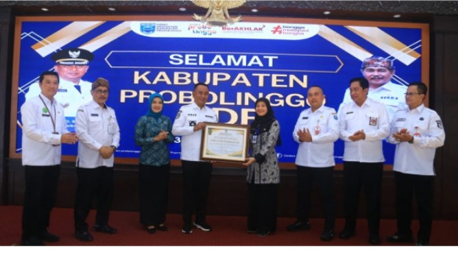 Simbolis penyataan kelayakan ODF ini ditandai dengan penyerahan sertifikat oleh Ketua Tim Verifikator ODF Pemerintah Provinsi Jawa Timur drg. Sulfi Anggraini kepada Pj. Bupati Probolinggo H. Ugas Irwanto, S.Sos., M.Si didampingi Pj. Ketua TP PKK Kabupaten Probolinggo Hj. Rita Erik Ugas Irwanto.