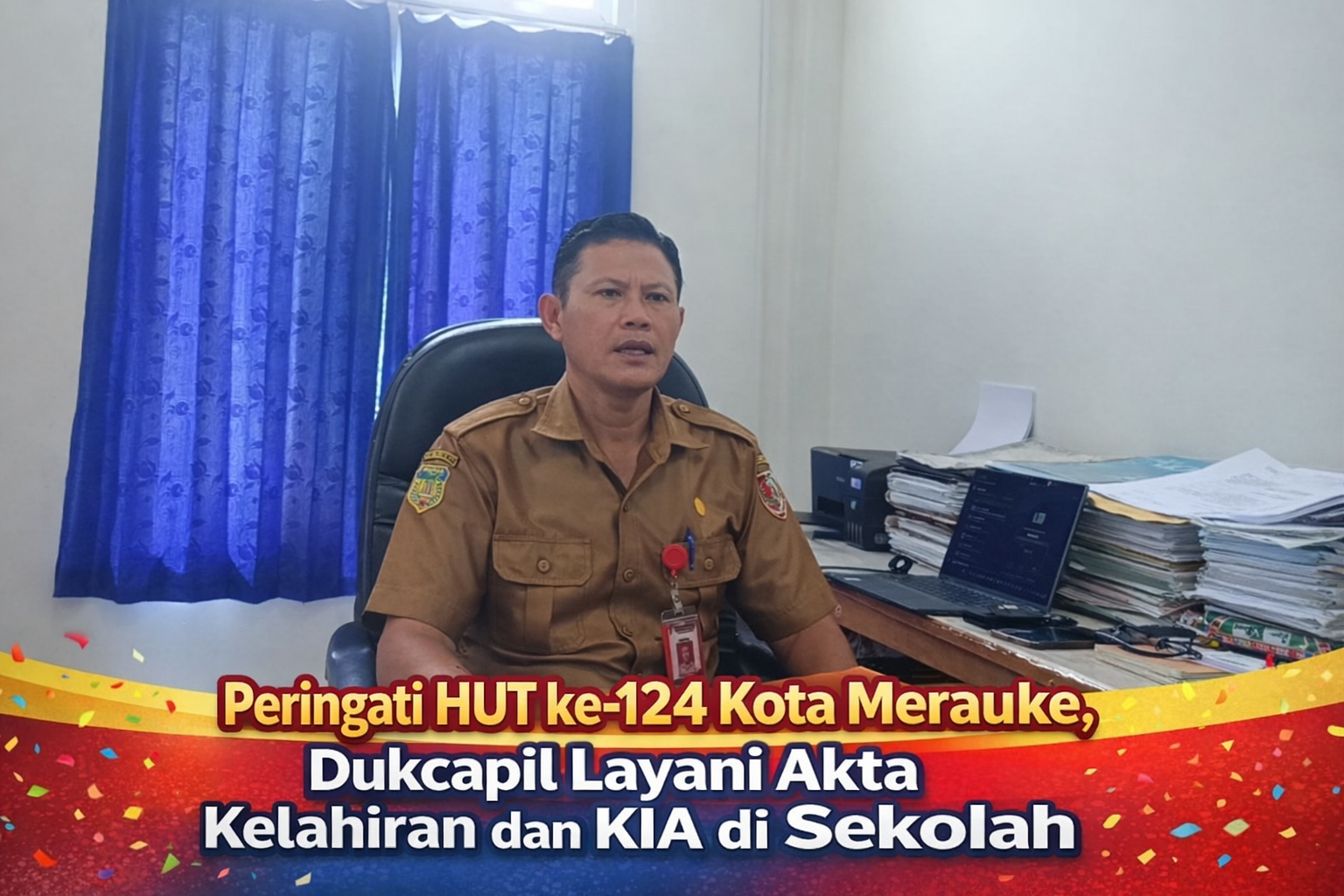 “Dalam momentum hari jadi Kota Merauke ke-124 ini, kami dari Dukcapil melaksanakan pelayanan akta kelahiran dan kartu identitas anak sebagai upaya percepatan cakupan kepemilikan dokumen kependudukan,” ujar Totok, Senin (2/2/2026).