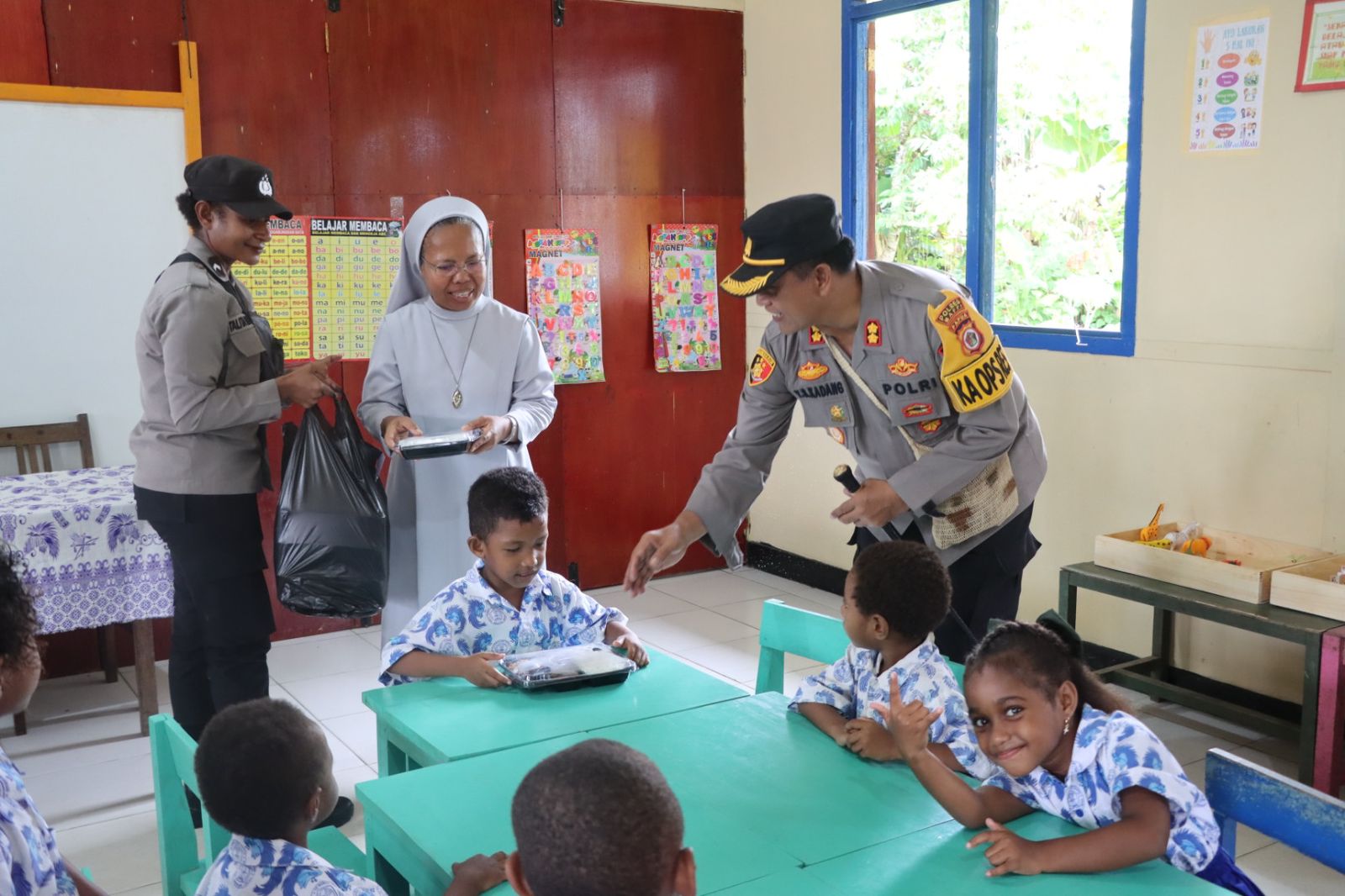 Dalam rangka mendukung program pemerintah untuk meningkatkan kualitas pendidikan dan gizi anak, Polres Mappi memberikan bantuan makanan bergizi kepada siswa-siswi Taman Kanak-Kanak (TK) di Kota Kepi, Kabupaten Mappi. Kegiatan ini dipimpin langsung oleh Kapolres Mappi, AKBP Yustinus S. Kadang, S.Sos., M.Si., pada Kamis (23/01/2025).