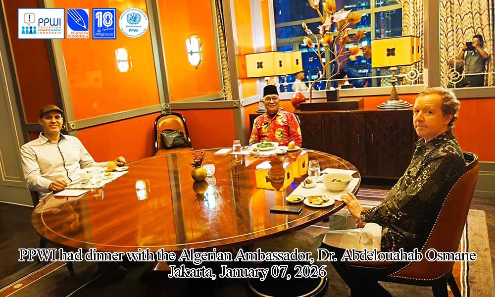 Jakarta – Dalam suasana hangat dan penuh keakraban, Persatuan Pewarta Warga Indonesia (PPWI) menggelar pertemuan khusus dengan Duta Besar Republik Demokratik Rakyat Aljazair untuk Indonesia, Yang Mulia Dr. Abdelouahab Osmane. Pertemuan berlangsung pada Rabu malam, 7 Januari 2026, pukul 19.00 WIB, di Jakarta, dengan format makan malam bersama yang berlangsung selama dua jam.