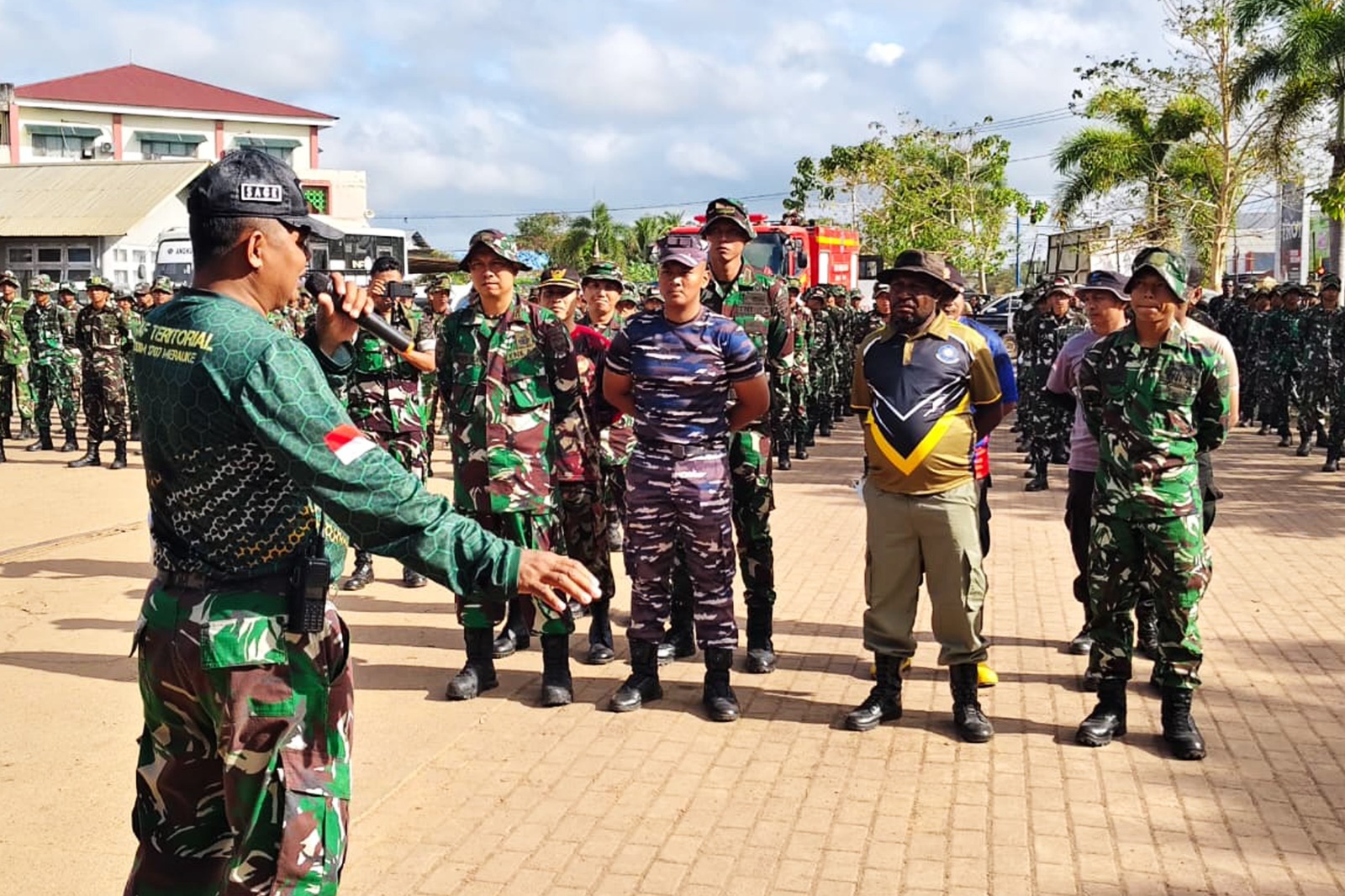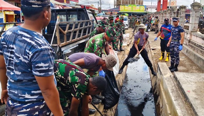 Merauke||Cendrawasi7, Suasana Pasar Wamanggu, Kota Merauke, Papua Selatan, tampak berbeda pada Senin (15/9/2025) pagi. Ratusan aparat gabungan TNI, Polri, Satpol PP, Dinas Lingkungan Hidup, Damkar, FKPPI, hingga Kokam turun tangan membersihkan pasar terbesar di kota tersebut.