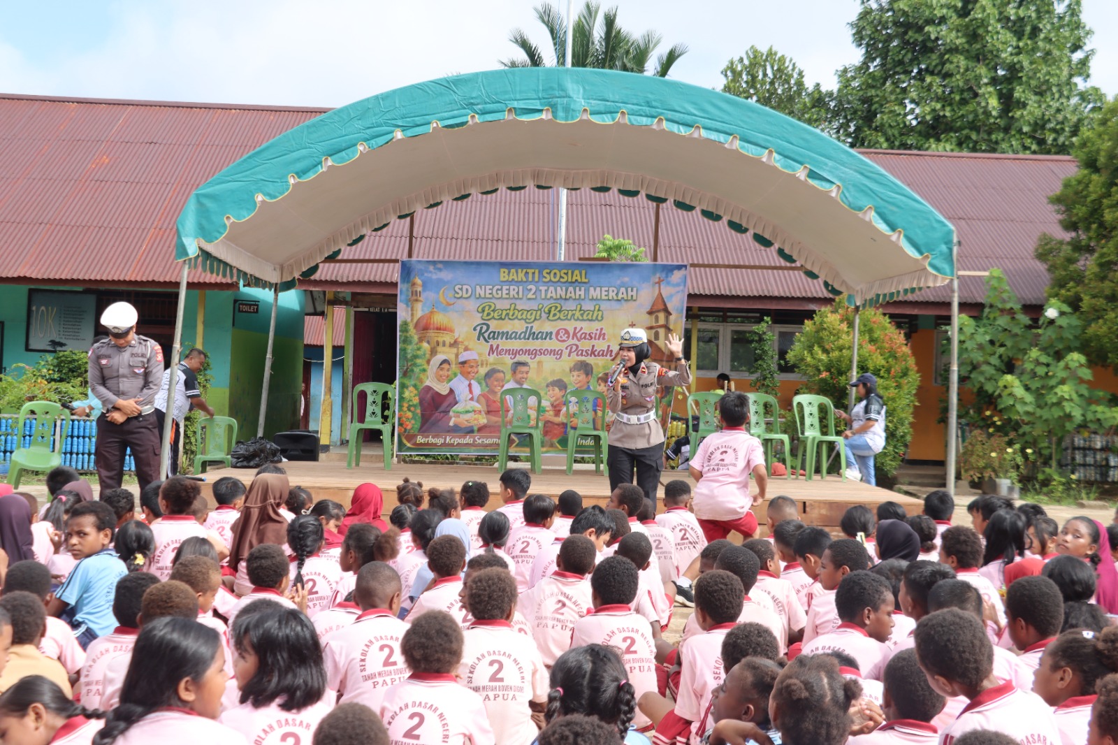 Boven Digoel||Cendrawasi7, Semangat kepedulian dan toleransi lintas agama terlihat dalam kegiatan bakti sosial bertajuk “Berbagi Berkah Ramadan dan Kasih Menyongsong Paskah” yang digelar di SD Negeri 2 Tanah Merah, Kabupaten Boven Digoel.