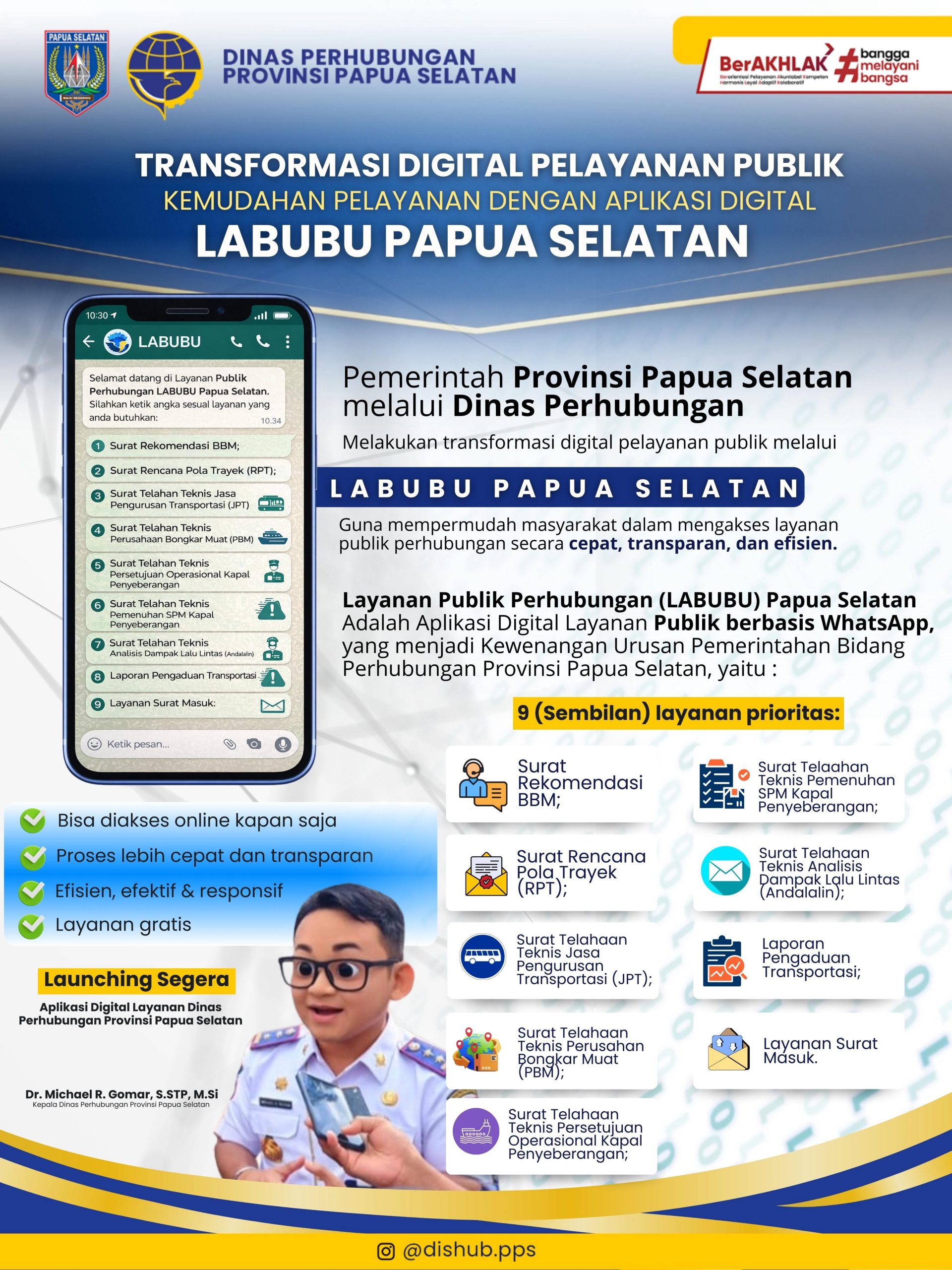 “Melalui LABUBU, masyarakat dapat mengakses layanan perhubungan secara online kapan saja. Sistem ini berbasis WhatsApp sehingga mudah digunakan oleh masyarakat,” ujarnya.