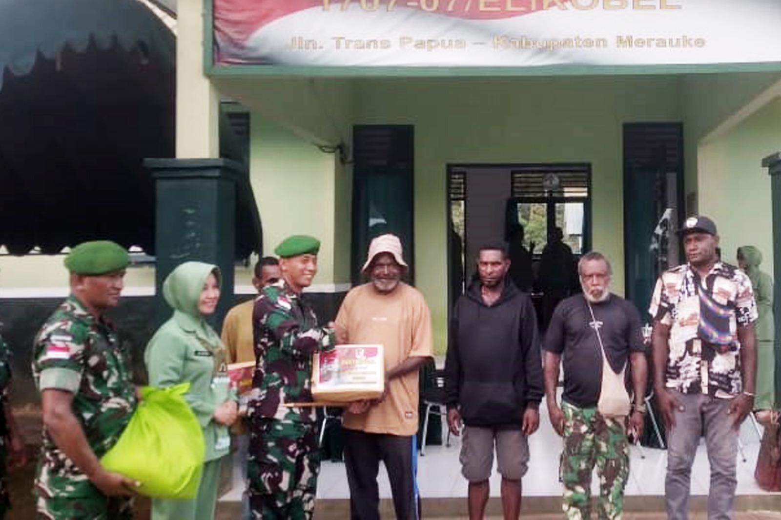 Dalam kesempatan tersebut, Dandim 1707/Merauke juga menyerahkan puluhan paket sembako kepada tokoh masyarakat, tokoh adat, dan tokoh pemuda setempat. Turut mendampingi Dandim dalam kunjungan kerja ini Pasi Intel Kapten Inf Suriyan, Pasi Ops Lettu Inf Roesli Rajab, serta para pengurus Persit KCK Cabang XVI Kodim 1707/Merauke. (*)
