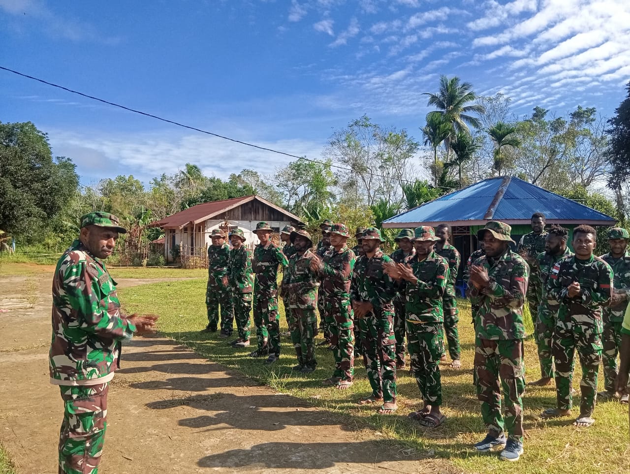 Kegiatan diawali dengan apel pagi yang dipimpin Lettu Inf. Marthen Yusuf Bano selaku Danunit Inteldim 1704/Mappi. Dalam arahannya, ia menegaskan seluruh personel tetap menjaga ritme kerja dan semangat gotong royong meski kondisi lapangan tidak ideal.