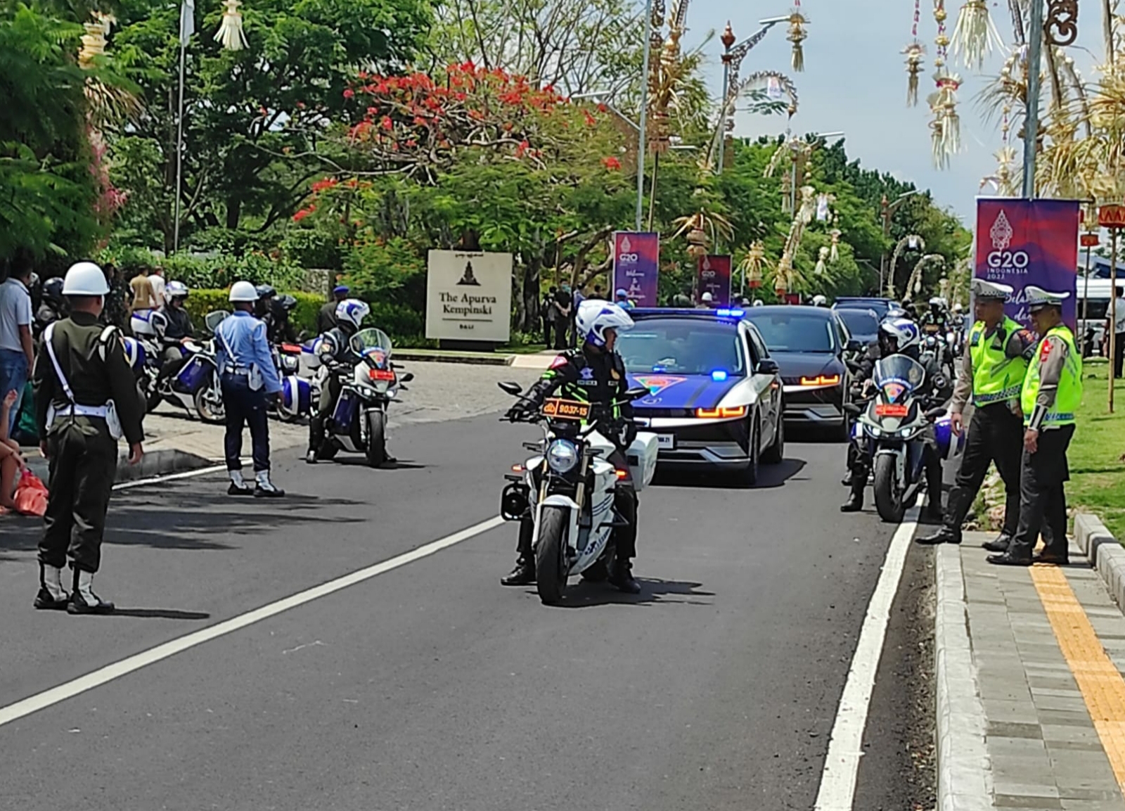 TNI-Polri menggelar geladi utuh pasukan pengamanan VVIP di seluruh lokasi kegiatan Konferensi Tingkat Tinggi (KTT) G20 di Bali. Pelaksanaan geladi ini dilakukan pada hari ini, Jumat (11/11/2022) dimulai dari Hotel Apurva Kempinskri Bali.