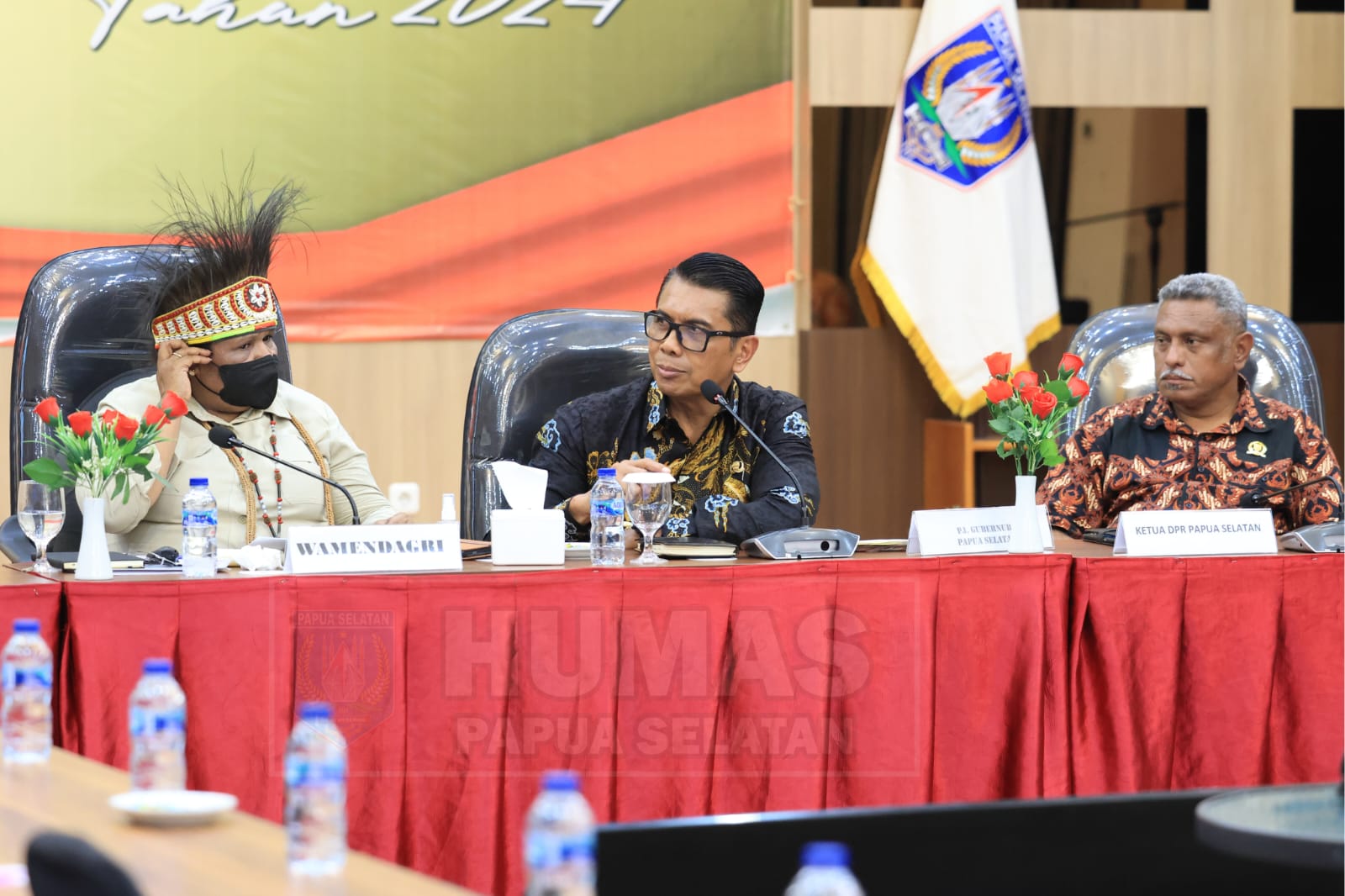 Saat tiba, Ribka Haluk memaparkan materi terkait persiapan Pilkada serentak 2024 dihadapan Bawaslu dan KPU beserta empat bupati yang hadir.